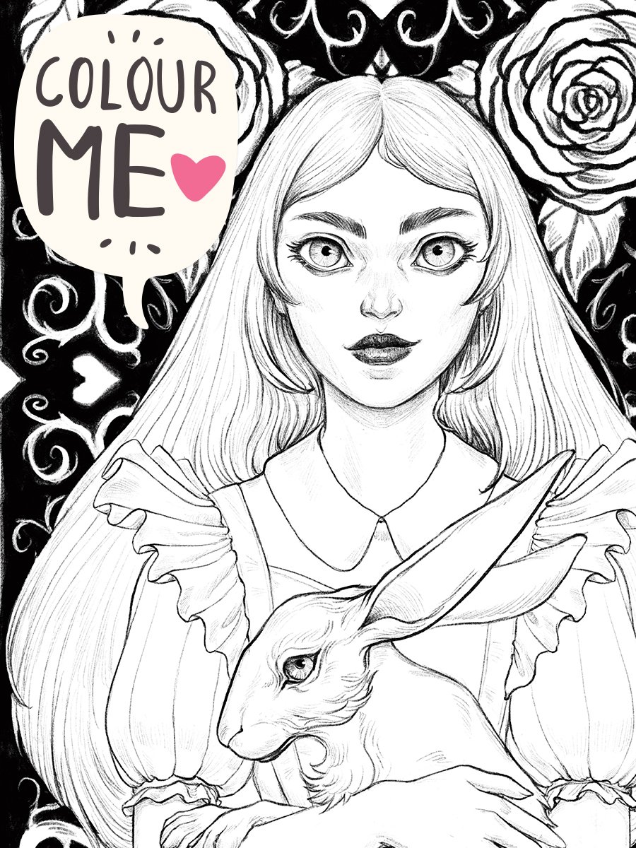 Free Alice in Wonderland Colouring Book Page for a colouring event I am hosting on Instagram every month, instructions on how to join are included in the download.